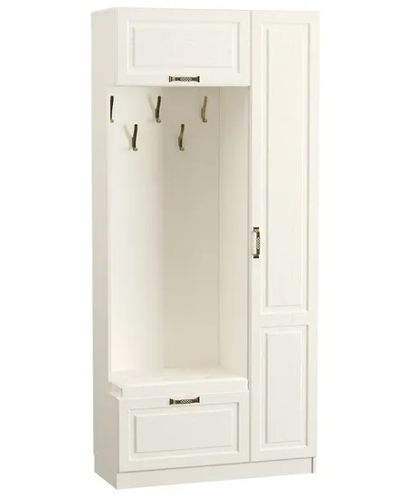 антресоль, вешалка, тумба с ящиком и мягким сиденьем, шкаф