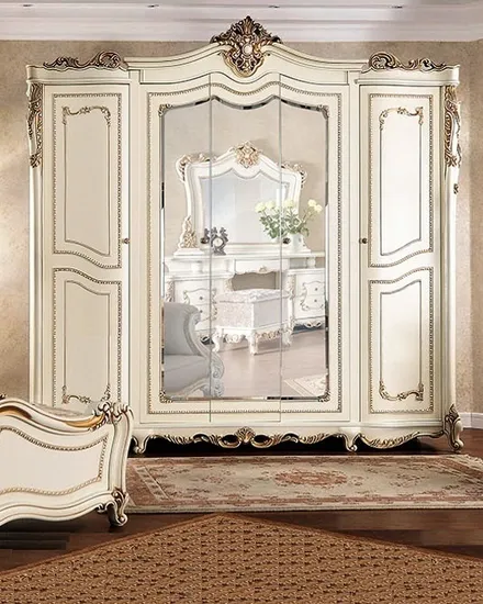 - Во всех деталях шкафа соблюдены античные пропорции и вкус создающие в спальне атмосферу душевной гармонии, успокаивающего уюта.