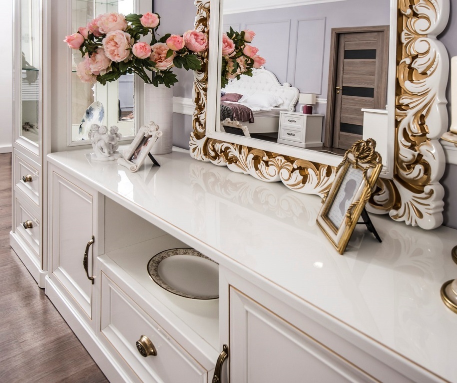 • Декоративные элементы, фасады, накладки покрыты глянцевым лаком